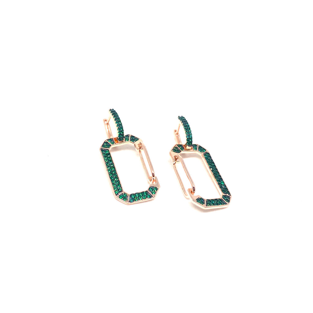 Kadın Gümüş yeşil Taşlı Pin Küpe Büyük zümrüt imitasyon Pırlanta görünümlü abiye 925 ayar